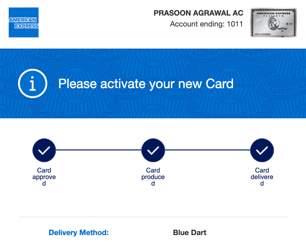 - 3rd Nov: Card got delivered within a day instead of 4-5 days