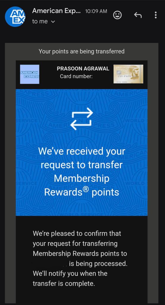 - The accounts get linked within few minutes post which you can see the points transfer option.